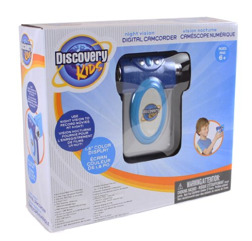 DISCOVERY EXCLUSIVE!The Discovery Night Vision Camcorder for kids 6 and older lights up the night for amazing videos of otherwise unseen happenings. The 3.0 megapixel video recorder and digital camera has infrared technology, 300K pixel CMOS night vision sensor, LCD display, four photo resolutions and video resolutions of 640x480 pixels. The kids camcorder, Discovery Night Vision, is complete with 16MB memory and SD card slot that supports a 4GB card (memory card not included), built-ion microphone, AV output, and USB and AV connection cable included.